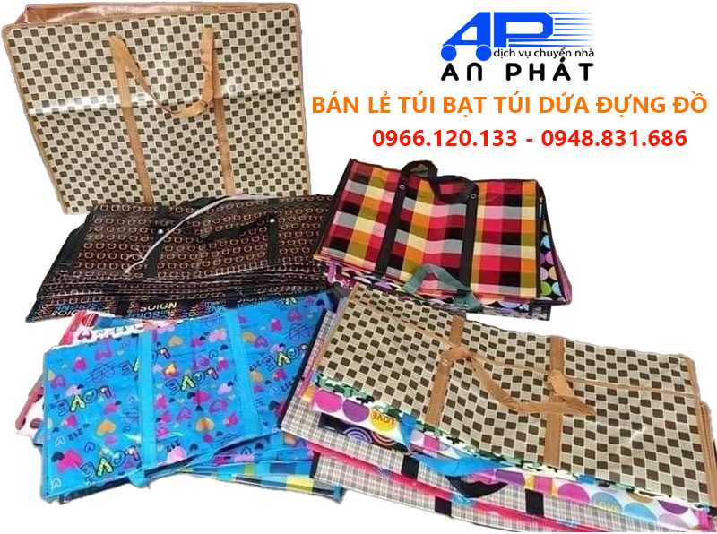 Với vai trò chính là dịch vụ chuyển nhà trọn gói, chuyển văn phòng chuyên nghiệp thì tại kho cơ sở vật chất An Phát luôn có sẵn rất nhiều loại túi bạt dứa đựng chăn màn quần áo đa dạng kích cỡ, hình dàng, màu sắc khác nhau, đảm bảo đáp ứng nhu từ phía khách hàng. Vì vậy, nếu bạn đang có nhu cầu tìm hiểu hoặc mua những loại túi bạt dứa cho các kế hoạch của bản thân thì đừng ngần ngại liên hệ ngay với An Phát thông qua hotline 0966.120.133 để được nhân viên của chúng tôi tư vấn và giải đáp một cách đầy đủ nhất. Bên cạnh đó An Phát cũng hỗ trợ giao hàng cho các khách hàng ở xa với mức phí ưu đãi, đảm bảo giao hàng đúng mẫu mã, nhanh chóng đến tay người sử dụng.